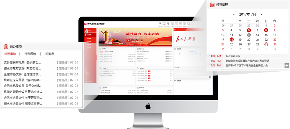 实现PC端,IOS系统下IPhone、IPad,Android系统下智能手机、E人E本、Pad等设备办公移动化,弱化办公时空制约,提高政务处理效率,推进“互联网+政务服务”建设,加快政务服务平台整合,创新服务模式,拓宽服务渠道,开放服务资源。