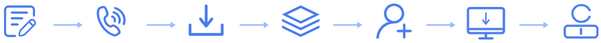 在线申请 业务专员线下联系 下载服务端 搭建环境 添加账号 下载客户端 登录试用